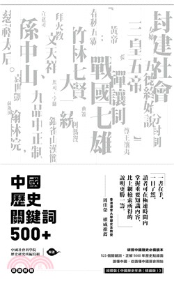本書由中國社會科學院權威專家組編訂,香港浸會大學歷史系教授周佳榮專文推薦。全書以523個中國歷史名詞解說,涵蓋包括基本歷史理論範疇與自人類起源至清朝滅亡的中國歷史,簡明扼要、通俗易懂,正解5000年歷史點線面。隨書附贈經摺裝《中國歷史年表》(精編版),幫助讀者建構歷史版圖,畫出歷史坐標。