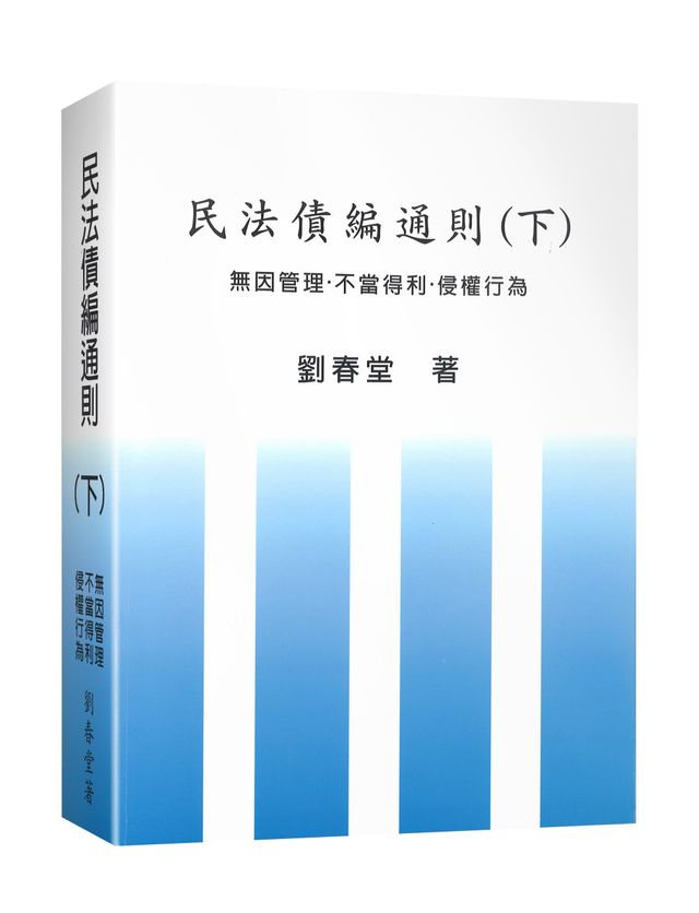 我國民法第二編「債」,分為二章。第一章「通則」(自第一百五十三條至第三百四十四條),係規定債之關係之一般原則,為各種債權債務關係共通適用之法則,此部分通稱為「民法債編總論」或「債法總論」。本書係以其有關規定及問題為論述對象,因此命名為「民法債編通則」,著重法條文義及基本概念之闡明,構成要件及法律效果之分析,理論與體系之建構,兼顧理論與實務之溝通交流,分上下兩冊刊行。又本書之撰寫,在體例上,未採傳統上民法債編總論(或通則)之編排順序,是一種嘗試。本冊書所論述者,以法定之債為對象,定名為「民法債編通則(下)」,並以「無因管理.不當得利.侵權行為」為其副題。