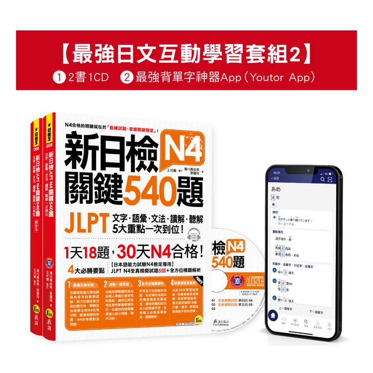都不能錯過《新日檢JLPT N4 關鍵540題/關鍵單字2,500【最強日檢互動學習套組2》!