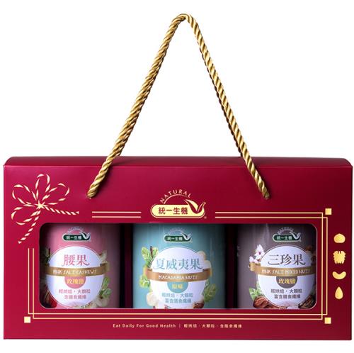 內容物: 原味夏威夷果140公克x1罐、玫瑰鹽三珍果150公克x1罐、玫瑰鹽腰果170公克x1罐