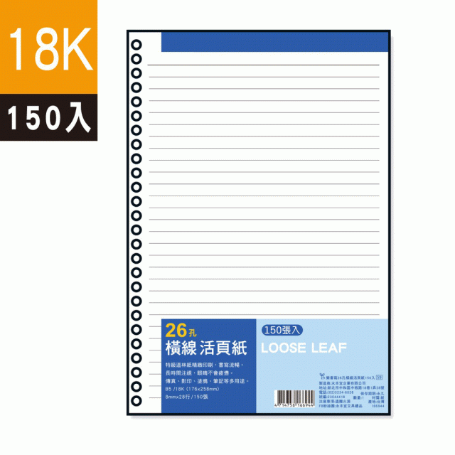 內頁:150張 / 8mm x 28行 /26孔