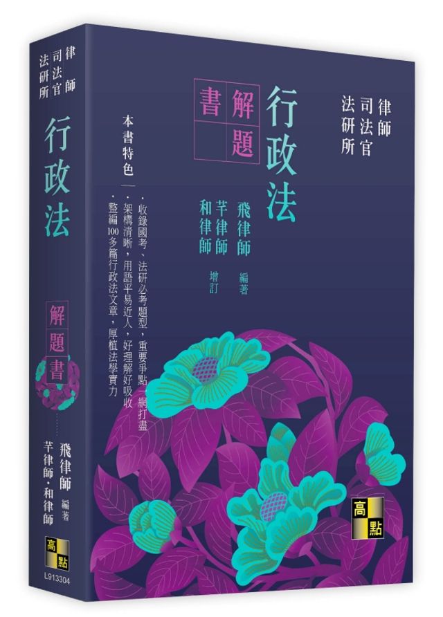 行政法橫跨實體法、程序法與爭訟法三大法領域,十分龐雜而不易掌握。有鑑於此,作者以清晰的架構與平易近人的用語,並輔以「題型分析」、「本題tips」、「關鍵字搜尋」等說明多管齊下,迅速帶領同學掌握行政法重要爭點意識,快速提升答題技巧的實力!