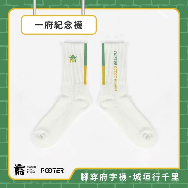 這款紀念襪由古都基金會與台灣知名機能襪品牌FOOTER 聯手打造,以「走過城牆、走進歷史」為靈感,延續府城三百年的精神。