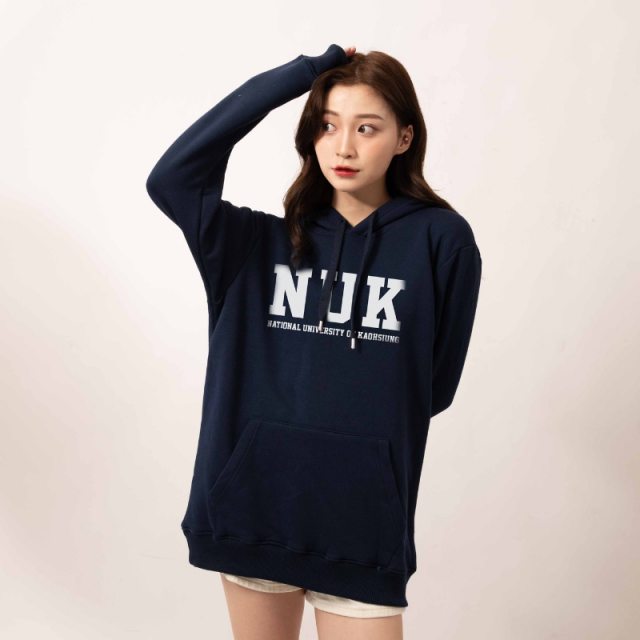7.圖案採用高雄大學英文校名縮寫,呈現高雄大學經典版帽T,整個呈現活潑大方具簡約感。高雄人都應該擁有的精神象徵~送禮自用兩相宜。