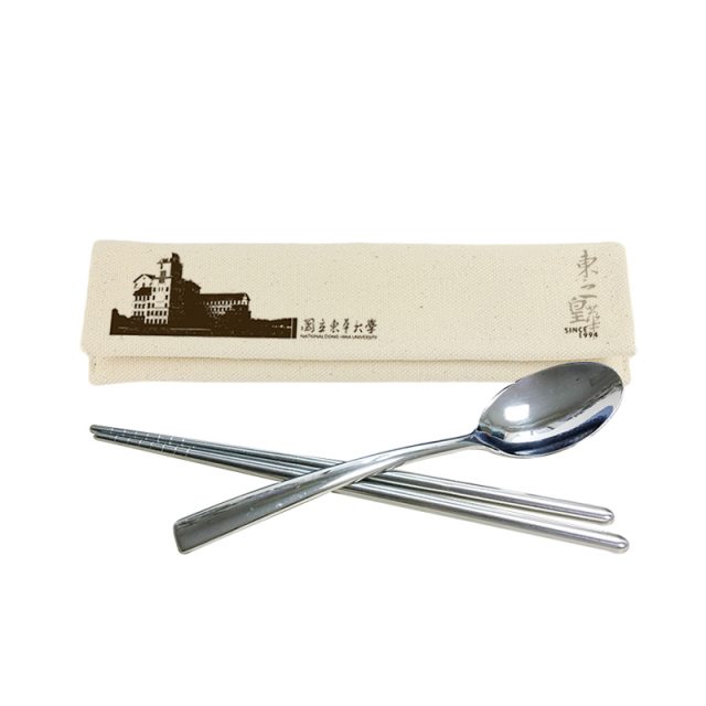 【東華大學】NDHU 東華環保餐具組(不鏽鋼)-米白/藍