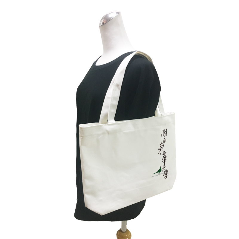 【東華大學】NDHU 環頸雉簡約生活布標極簡帆布肩背袋-白色