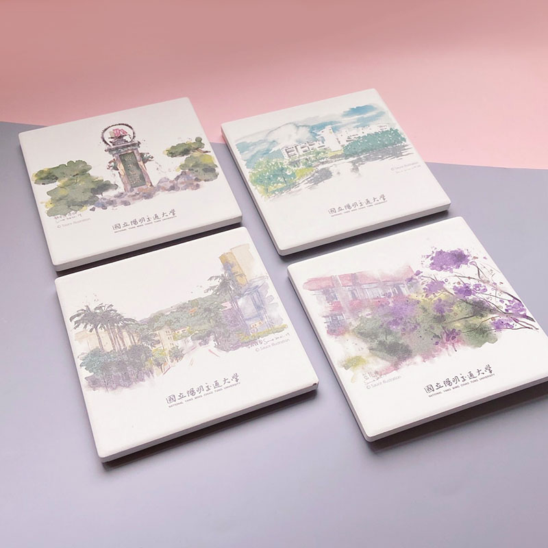 【陽明交通大學】NYCU 校園插畫吸水杯墊-竹湖/藍花楹/陽明校園/飲水思源碑