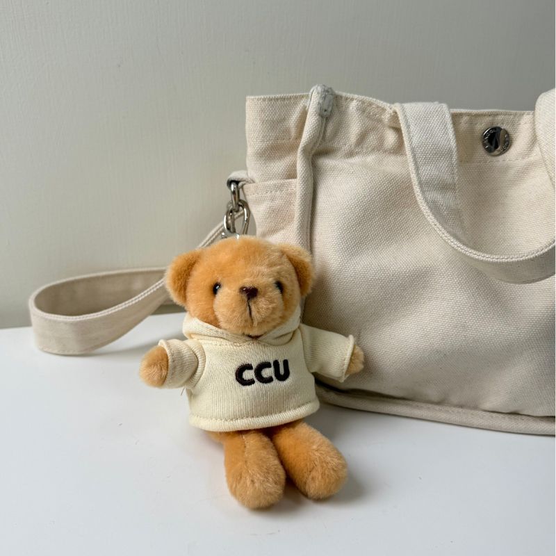 【中正大學】CCU 帽T小熊掛飾鑰匙圈-奶油米