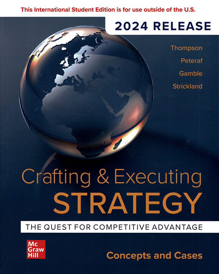 Crafting & Executing Strategy: The Quest for Competitive Advantage: Concepts & Cases has a long-standing reputation of being the most teachable text. It is regarded as the benchmark by which all others are measured. It is engaging, clearly articulated and conceptually balanced mainstream treatment of the latest developments in theory and practice include the clearest presentation of the value-price-cost framework. Our co-author, Margaret Peteraf, a highly regarded researcher, helped integrate both the resource-based view of the firm from the perspective of both single-business and multi-business strategies. Chapter content is tightly linked to high-interest cases, most of which are written by the text authors, and receive high acclaim for student appeal, teachability and suitability.