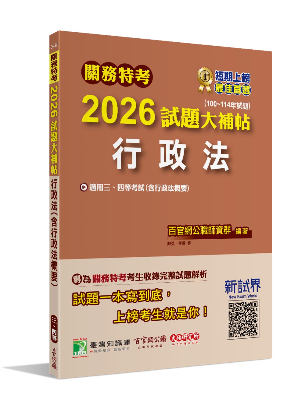 專為【關務特考】考生出版的解題書,適用關務特考各科別,完整收錄關務特考【行政法(三等)】、【行政法概要(四等)】100~114年試題,考前衝刺必備大補帖——