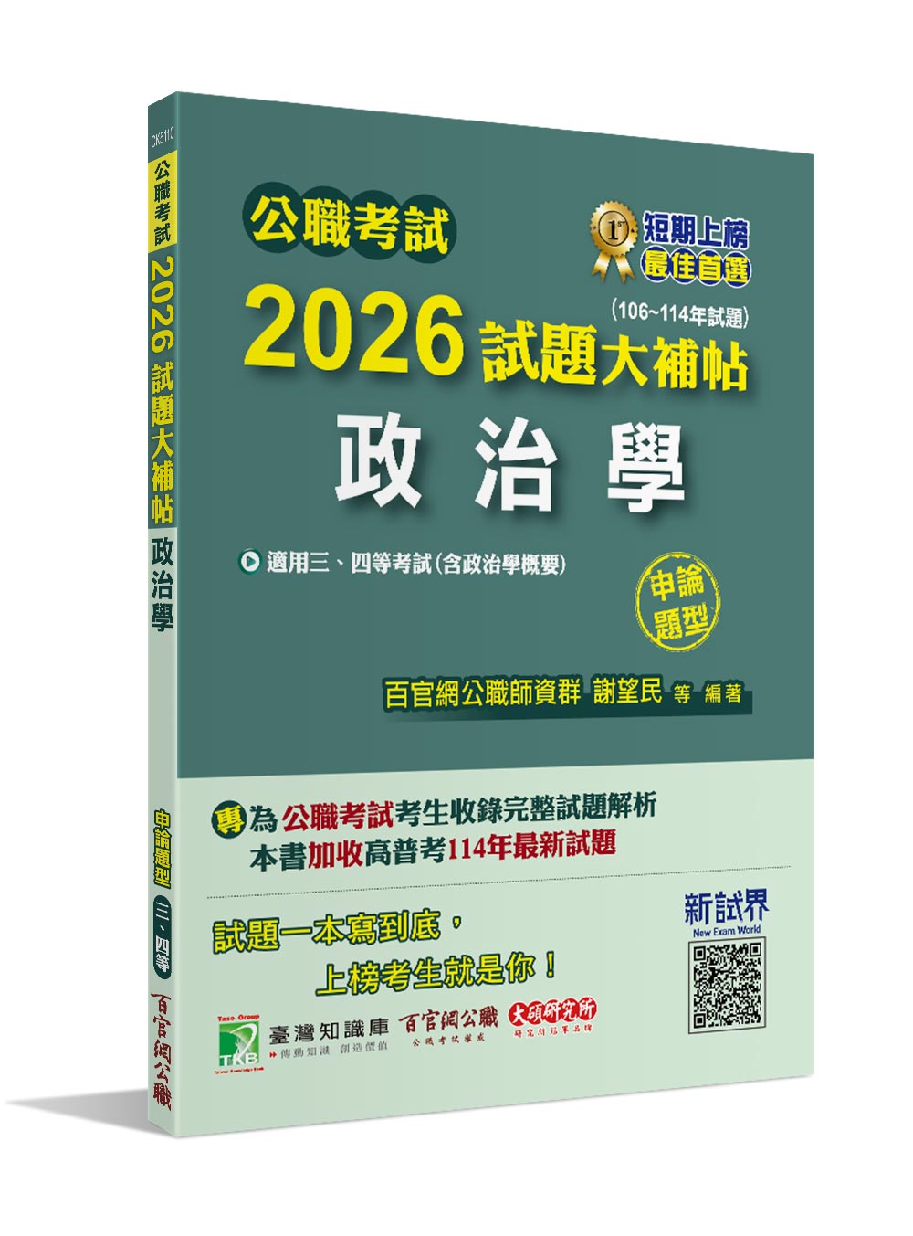 (2) 政治學(分為申論題型、測驗題型兩種試題書)