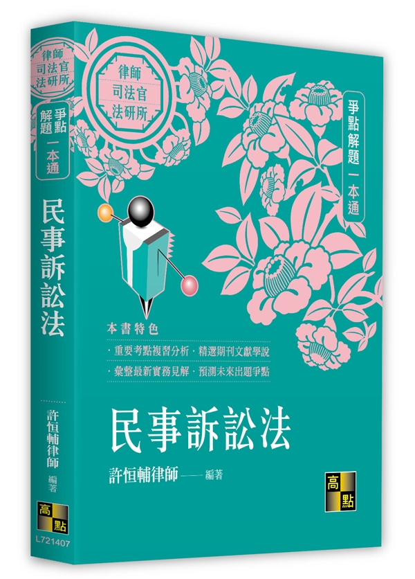 此外,每章節末尚有例題演練,透過實例題的模擬,更能強化考生對抽象法學概念的具體應用!希望藉由本書之編排特色,能夠使考生在準備民事訴訟法的考試上更加得心應手。