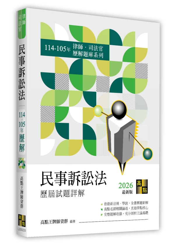 本書收錄114~105年律師、司法官、公證人、司法事務官、法院書記官、家事調查官民事訴訟法歷屆試題完整擬答,將歷屆試題依最新法規、學者之最新著作、文獻及重要實務見解等修訂,全新改版、舊題新解,希望讀者透過歷屆試題的演練來強化及提升作答實力,並能掌握考試焦點所在。本書特色如下: