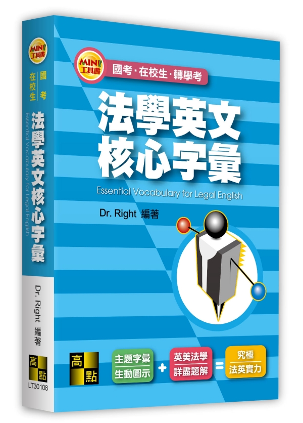 .配合國考命題大綱,選錄憲法、契約、侵權、刑法、民訴、刑訴、公司、證交等八科核心字彙,增加讀者對英文單字的熟稔度。