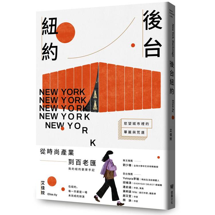 在《後台紐約》中,Elise以凝鍊冷靜的筆觸,回望自己在紐約生活的八年經驗。從時尚產業的門外徘徊、舞台後的工作現場,到疫情中城市沉寂的聲音與節奏,紀錄一個從小在台灣長大的文學少女,如何在異地城市的移動與摸索中,重新認識自己與世界的樣貌。那些從台前退下、走進後台的瞬間,逐漸形塑出屬於她的存在方式與生活選擇。