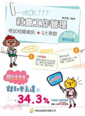 「社會工作管理」雖涉及不同的管理科學,但其結構性相當清楚,歷屆考題並無特別刁鑽的考題,準備時應從「社工人的思考模式」及「參加考試的角度」來建立完整架構,讓您漂亮解答,即可輕易奪取高分,榮登金榜。