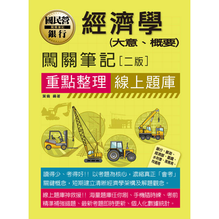 此外,本書更結合線上題庫系統,讀者可隨時練習銀行、郵政及國營事業等相關考試題目,並持續更新最新試題,突破紙本題數限制,讓練習更完整、準備更即時。從重點複習到題目演練,一本書即可完成高效率備考。