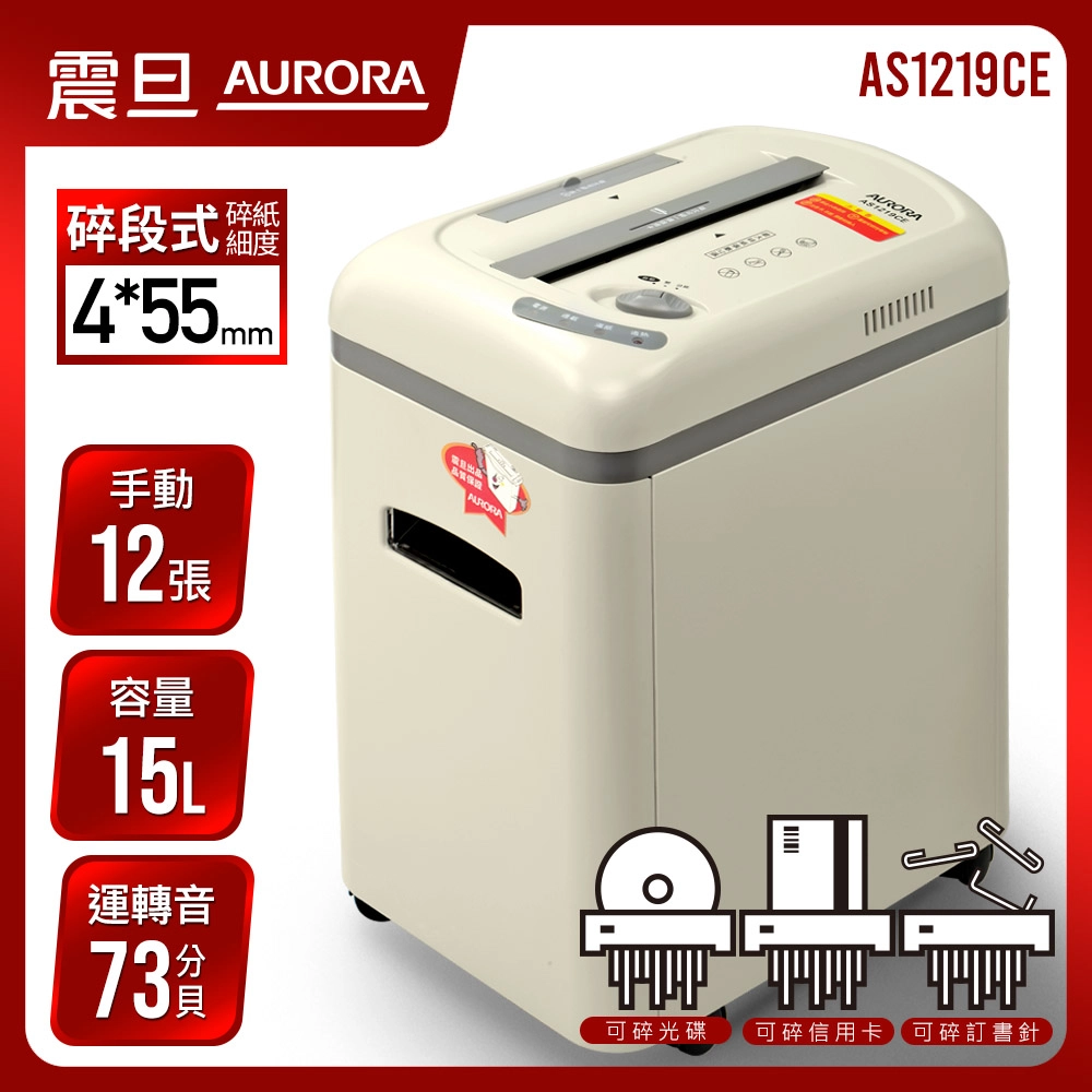 【AURORA震旦】12張碎段式高碎量多功能碎紙機 AS1219CE