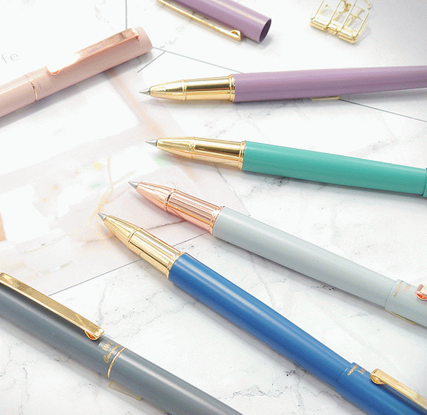 傾斜的頂端與尾部設計,點綴富有彈性的筆夾輔以簡單的色彩,