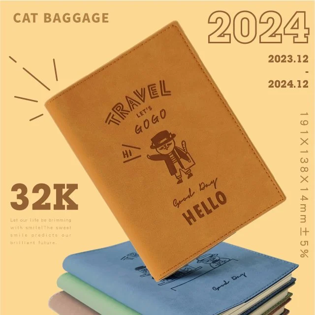 【青青 Ching Ching】2024 年度雙線圈皮書衣手帳32K-貓行李系列 (4色)