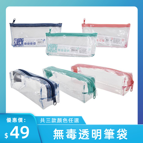 【款式任選】無毒透明筆袋 扁形/長方筆袋