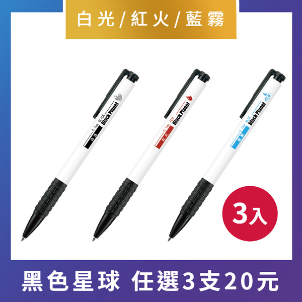黑色星球 按壓原子筆3入(0.7mm)