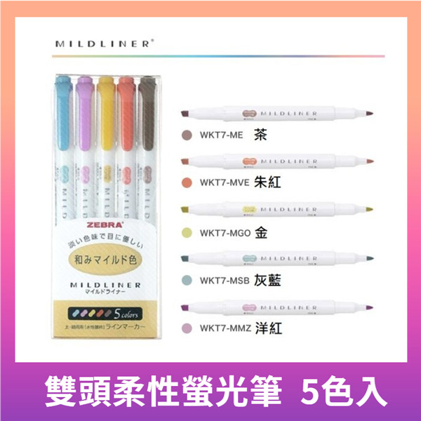 ZEBRA MILDLINER雙頭柔性螢光筆-和風系5色組 #WKT7-5C-R