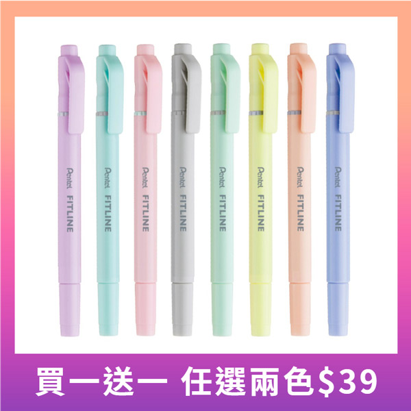 【買一送一】Pentel FITLINE 雙頭螢光筆-粉彩色系