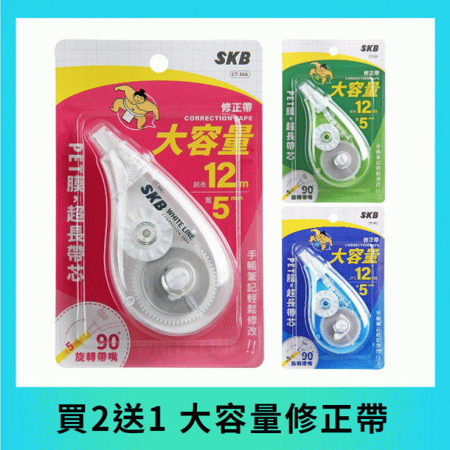 【限時優惠】SKB拋棄式超長修正帶(2入) CT-30A 出貨隨機色