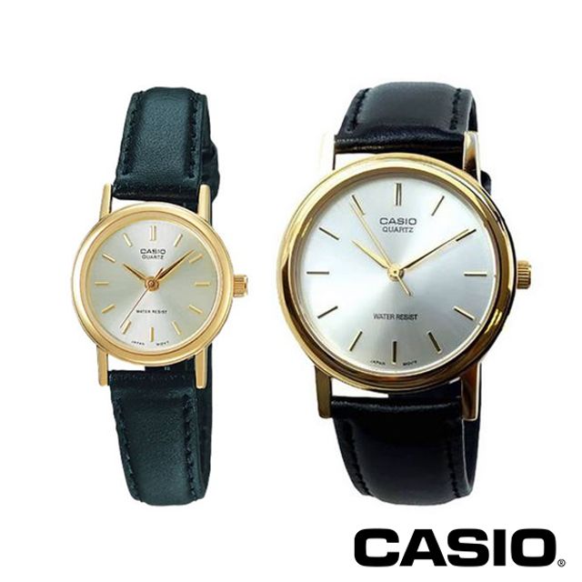 CASIO簡約時尚皮質指針 女錶 LTP-1095Q-7A+男錶 MTP-1095Q-7A