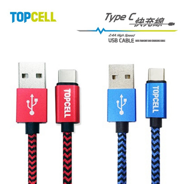 TOPCELL Type C 傳輸充電編織線 2.4A充電線(單入) 神腦貨