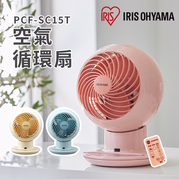 【Iris Ohyama】靜音渦流3D立體擺頭遙控循環扇 PCF-SC15T (馬卡龍2色)
