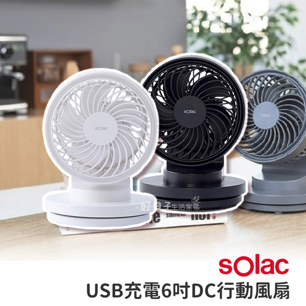 【Solac】USB充電6吋DC行動風扇 SFA-F01 (白/灰)