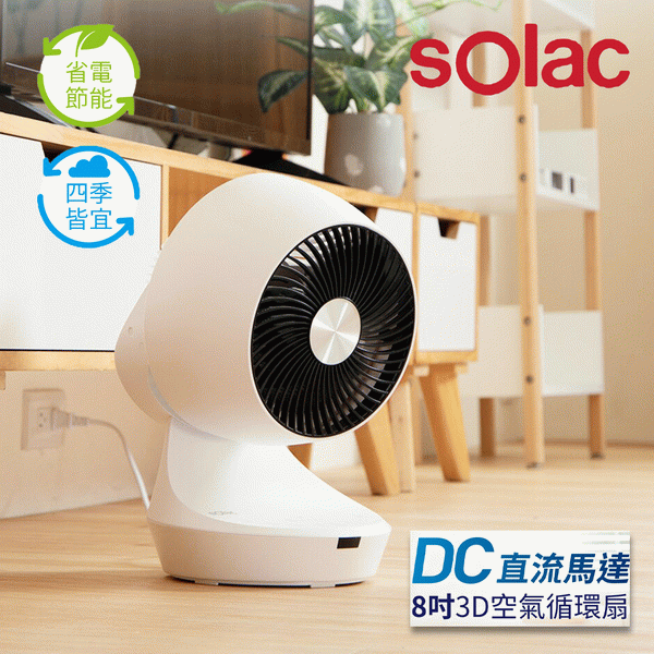 【Solac】DC直流馬達8吋3D空氣循環扇 SFBQ03W 白