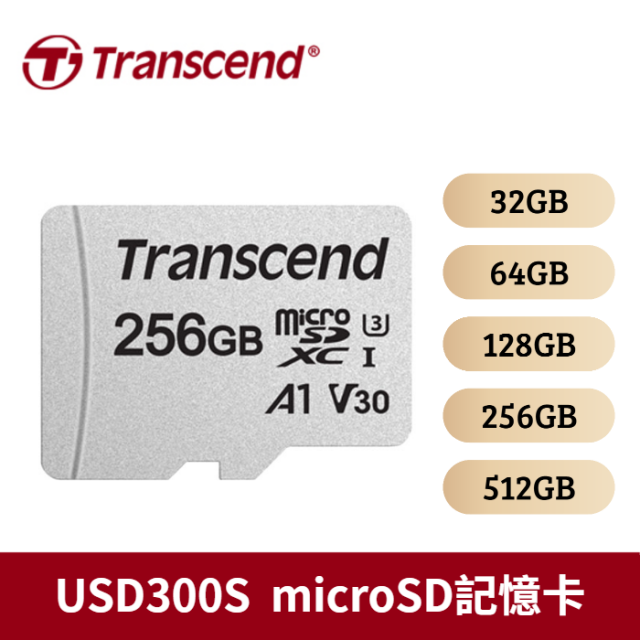 Transcend 創見 USD300S microSD UHS-I U1 記憶卡附轉卡(32/64/128/256GB)