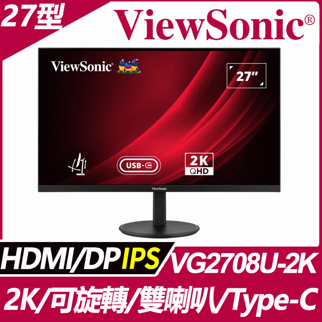 VG2708U-2K 27吋 人體工學顯示器 (IPS/QHD/內建喇叭)
