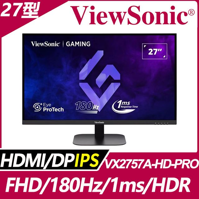 ViewSonic VX2757A-HD-PRO 搭載 27 吋 Full HD 螢幕。