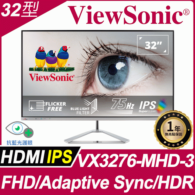 VX3276-MHD-3 32吋 無邊框設計顯示器 (IPS/FHD)
