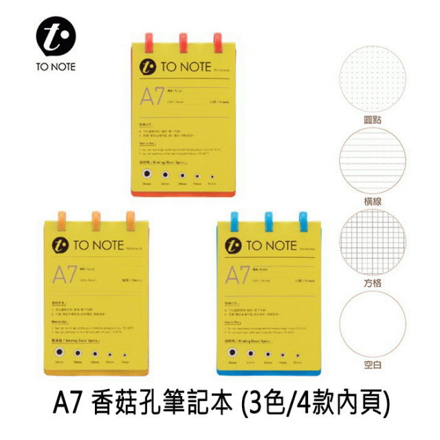 【TO NOTE】 A7 香菇孔筆記本 (3色/4款內頁)