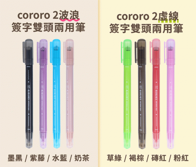 品名:cororo 2 波浪簽字雙頭兩用筆 4入組 / cororo 2 虛線簽字雙頭兩用筆 4入組