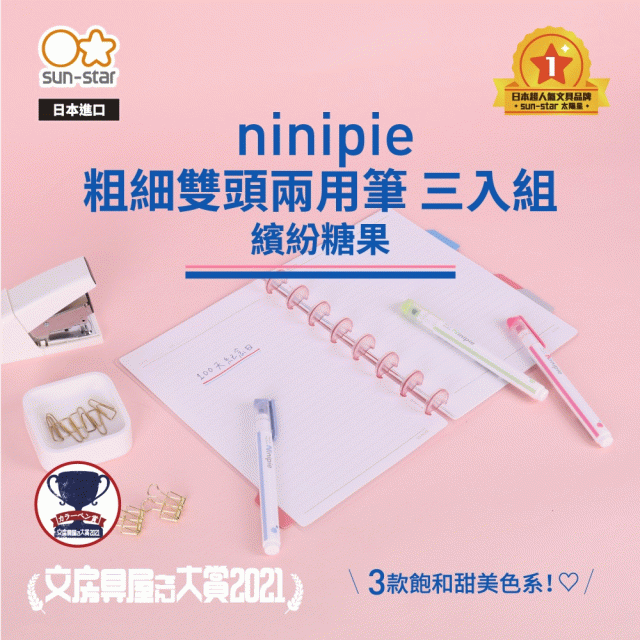 ninipie 粗細雙頭兩用筆(代針筆與螢光筆) 三入組 - 繽紛糖果